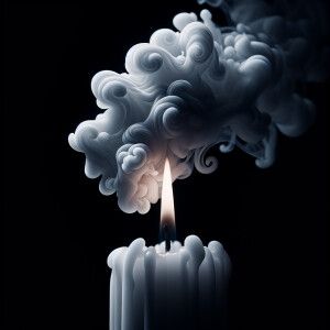 «A close-up of a glowing lit candle, the smoke rises from the fla...»
