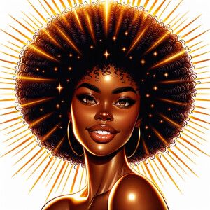 «"Describe in vivid detail a radiant Afro woman whose beauty is a...»