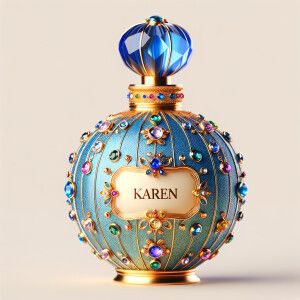 «Create a 3-D realistic blue and gold, colorful jewels perfume b...»