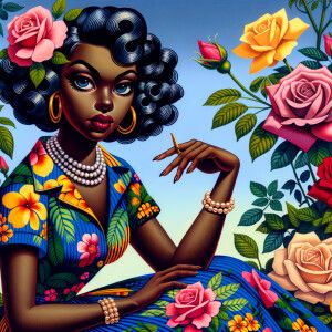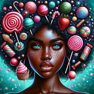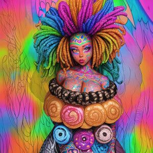 «A digital portrait of an African-American girl with an elaborate...»