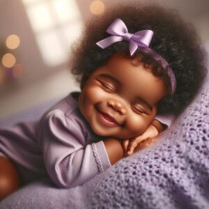 «An adorable African American baby with a joyful expression, slee...»