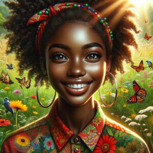 «Create an image of a sophisticated woman with dark skin, wearing...»