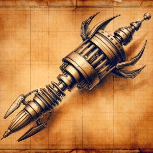 «Aged parchment blueprint for a realistic ray laser gun, lead med...»