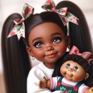 «African-American girl with huge Hazel Brown eyes playing with Af...»