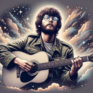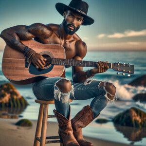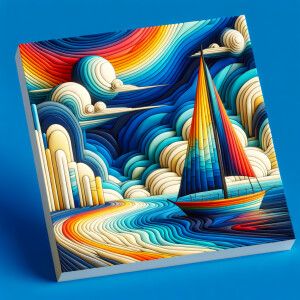 «Pain the beach in an abstract with blue sky and a sail boat with...»