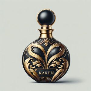 «Design a fancy, black and gold bottle of perfume in the shape of...»