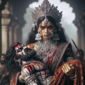 «portrait of angry looking, gorgeous goddess durga cosplayer carr...»