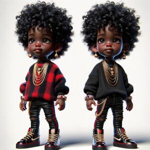 «Create a 3-D realistic image of an African-American boy with tig...»
