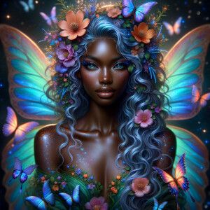 «Envision a mystical Hawaiian African-American fairy, her skin a...»