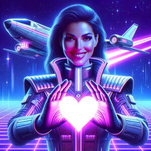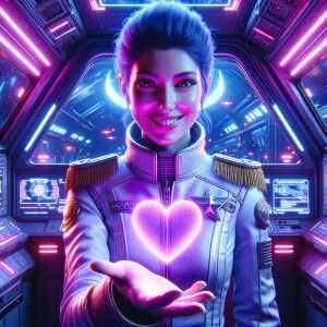 «Высокая улыбающаяся девушка-капитан космического коробля Startra...»