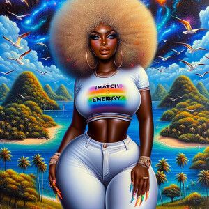 «A vivid yet subtly 3D image of a beautiful light-skinned African...»