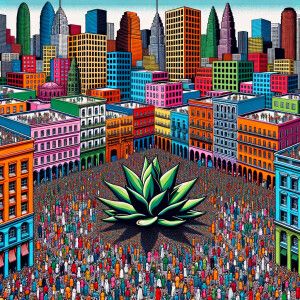 «A woman standing in a war torn town. Holding an AR15 with 2 side...»