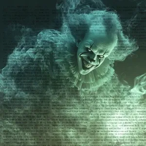 «Generate an image :"Illustrate an eerie, sinister clown emerging...»