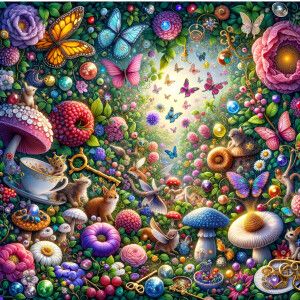 «"Create an intricate 'I Spy' garden scene blooming with vibrant...»