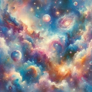 «Pretty celestial watercolor all over print design, soft pastel...»