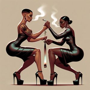 «Two. Puerto Rican women, broke stones with stilettos on and tigh...»