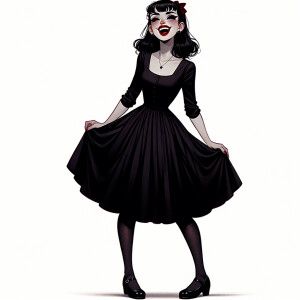 «Laughing gothic woman, wearing red lipstick, wearing a black dre...»