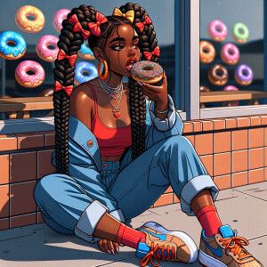 «"Envision a digital painting of a vibrant African American chibi...»