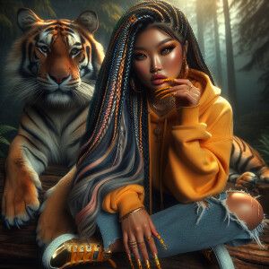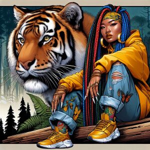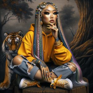 «ink wash: In the style of dynamic composition a beautiful Asian...»