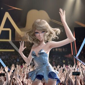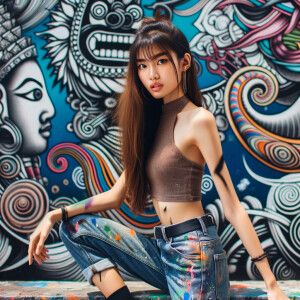 «Attractive, Asian teenage girl, long brown hair and bangs, weari...»