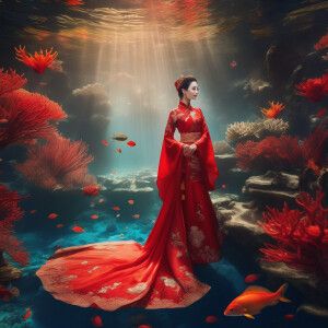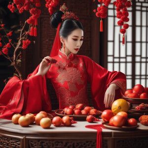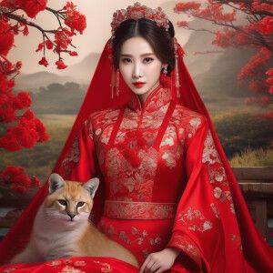 «Chinese antique wedding dress,red theme,Beautiful woman with a...»
