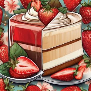 «Create a glass deco illustration of cheesecake strawberry and ic...»