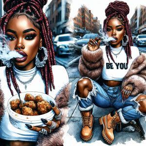 «Create an image of a young woman with Afro-Caribbean features, s...»