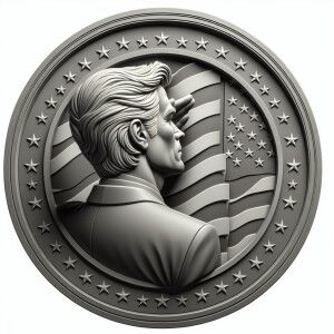 «3d bas relief grayscale Donald Trump saluting the American flag...»