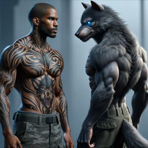 «Anthropomorphic Black male (shirtless, muscular, skinny, tribal...»