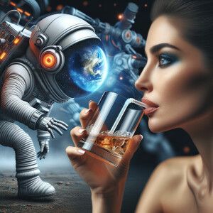 «Beutiful woman drink Russian vodka from tube, Russian vodka Stol...»