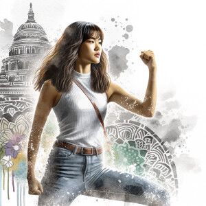 «Athletic Thin skinny Attractive, Asian teenage girl, long brown...»