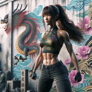 «Petite mixed race girl large expressive eyes athletic body»