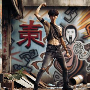 «Skinny and thin Asian teen girl wearing skin tight jeans that ar...»