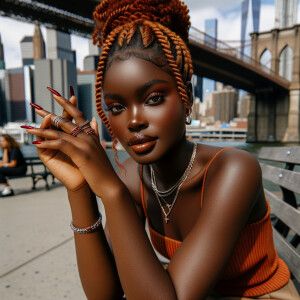 «Create a 3-D realistic, elderly African-American woman stands in...»