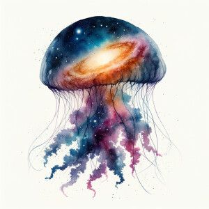 «A cosmic outer space pretty watercolor graphic splattered on the...»
