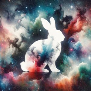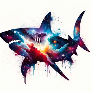 «Cosmic watercolor filled animal silhouette on a blank white back...»