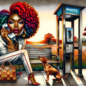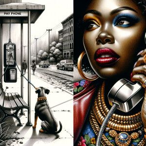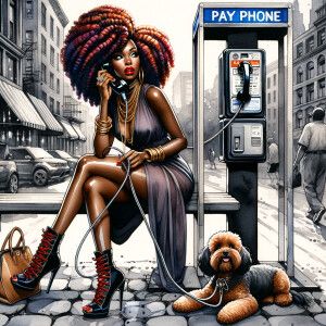 «Ink wash: Pay phone booth landscape. An African American mahogan...»