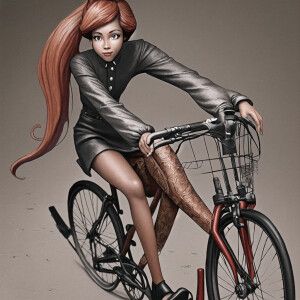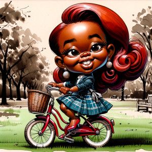 «Ink wash panting: park landscape riding a bicycle. A caricature...»