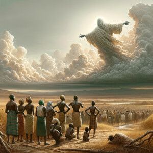 «Black slaves looking up at a cloud forming into Jesus, HD, 4K, 8...»
