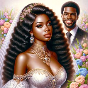 «Imagine an elegant African-American bride in a radiant moment. H...»