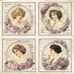 «Victorian Mauve Rose Cameos – 4 Medallion Cards (Antique Portrai...»