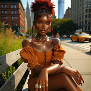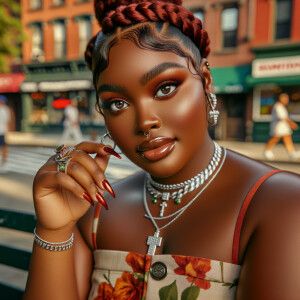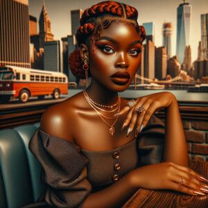 «Create a 3-D realistic, elderly African-American woman stands in...»
