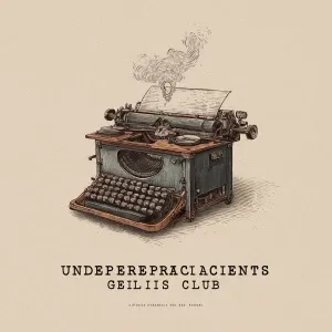 «minimalist line-art illustration of a vintage typewriter, steam...»