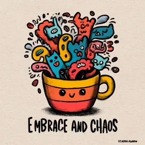 «A hand-drawn coffee cup overflowing with swirling steam that mor...»