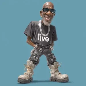 «Generate a caricature-style cartoon image of a 63-year-old bald...»