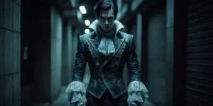 «In the dimly lit alley stood a rococo-inspired shadowy digital n...»