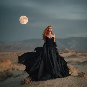 «stunning gorgeous redhead female supermodel standing in the dese...»