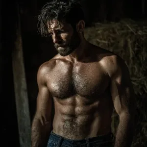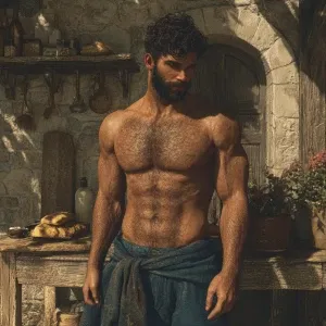«Create an image of a muscular Italian man with dark, slightly fa...»