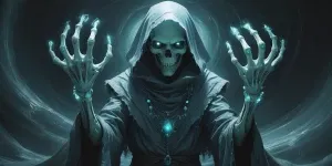 «Create an image depicting an eerie, enchanted wormhole navigator...»