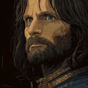 «Create an image of Aragorn, as portrayed by Viggo Mortensen in "...»